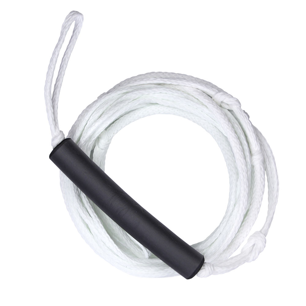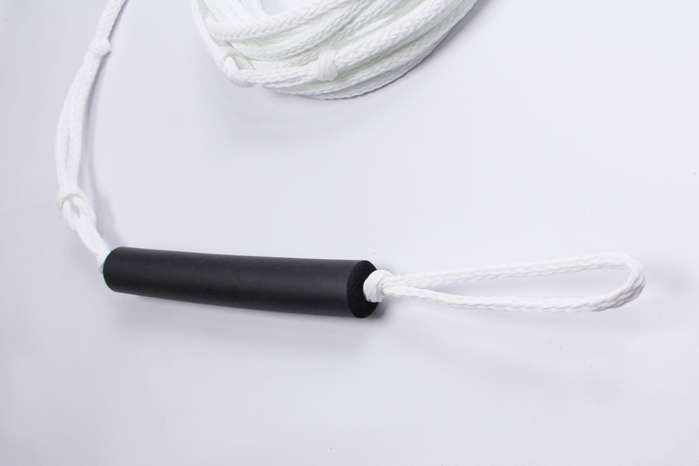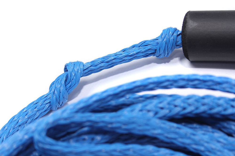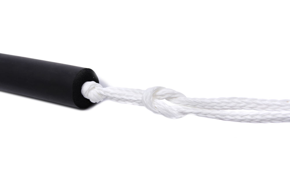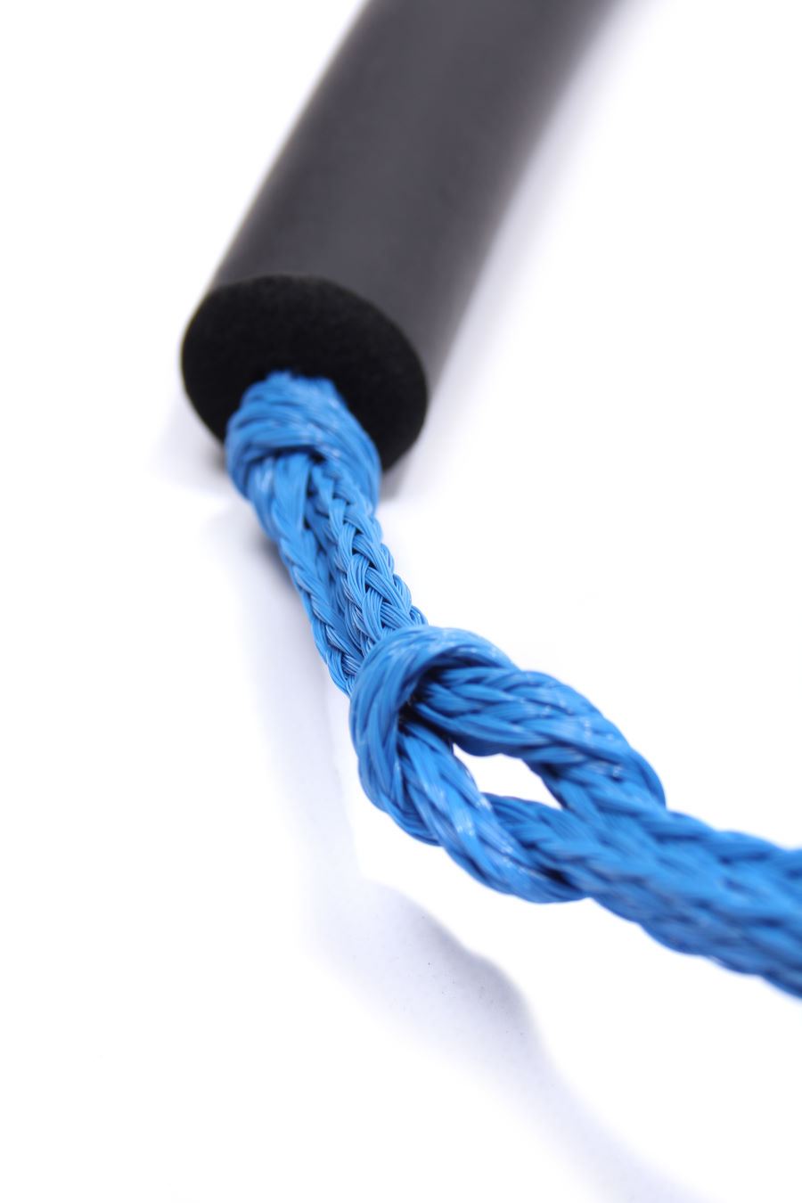 “Braided in house from our customized low stretch polyethylene yarn. Our braid design gives this rope the desired low stretch while being less rigid than other trick lines. Our high quality trick ropes has 4 sections and has a float.